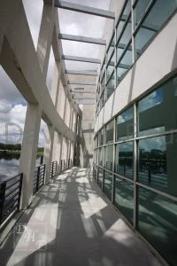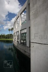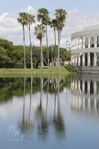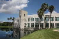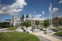 The Broward County West Regional Courthouse was built in 1992 to fulfill the needs of the growing population in western Broward County. Located on Lake Shutter in a complex that includes a library and other public buildings, the courthouse features rounded walls and an open, wrap around portico with views of the lake.