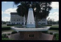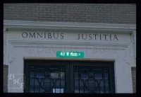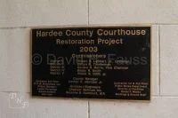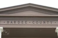 The Hardee County Courthouse is a three story yellow brick building with Greek Revival architecture. The courthouse was built in 1926 on a city square in downtown Wauchula. Interesting design features include “Omnibus Justitia” inscribed above the front entrance and an iron “H” on each of the two massive front doors.